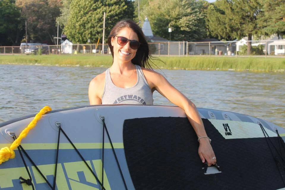 SweetWater Yoga teaches Stand Up Paddle Board Yoga classes weekly at Clark Lake and in other locations throughout Michigan and Ohio. They are in their fourth season of business and provide accessabile, safe, and engaging classes for all levels. Sally Lyons, owner and teacher, is certified through The Stoked Yogi for paddleboard yoga and paddle classes, and is also a RYT 200.